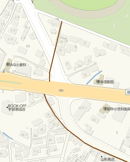 以下に示す茶色のラインがかつて存在していた本路線相当部分になる。