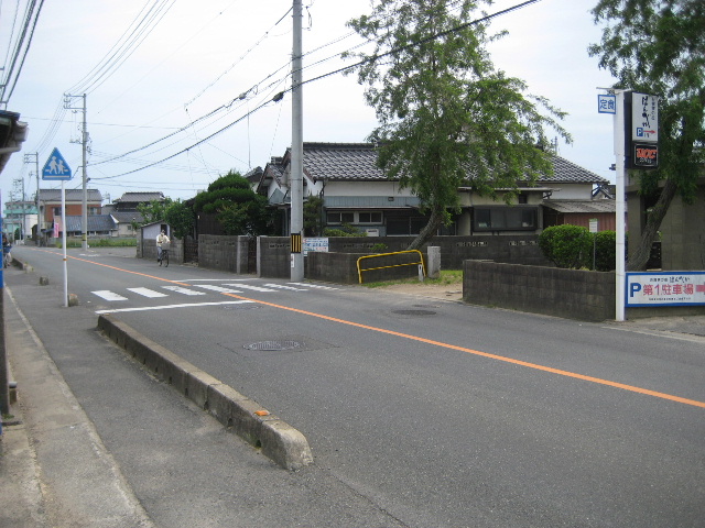 市道岬駅通り線で、その名の通り宇部岬駅の横を通過している。現在地からみると右折が宇部岬駅方面になるのだが、道は極めて狭い。