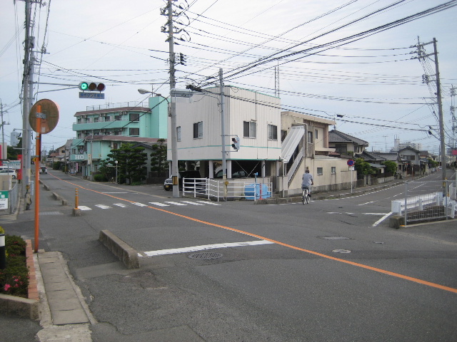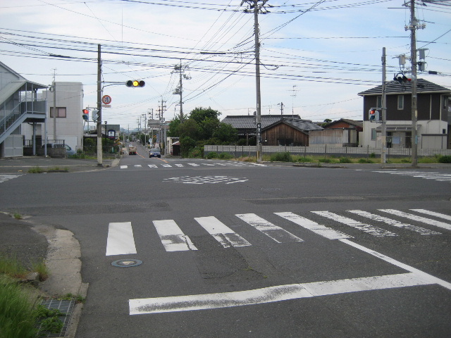 市道が真っ直ぐながらも起伏を伴いこの交差点へ至る様子が分かる。
