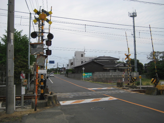 十字路から先は再び軽い下りになる。真っ直ぐ進む先で踏み切りに出会う。