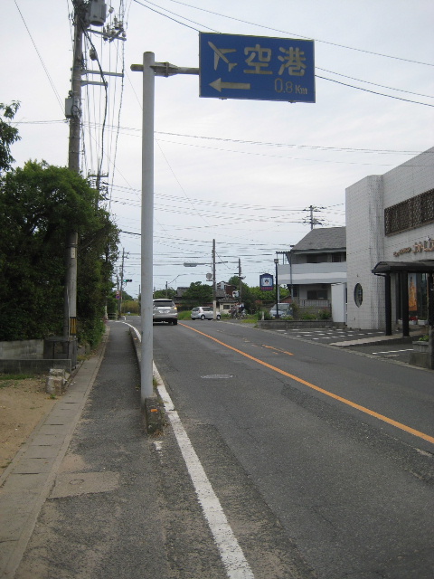 踏切横断後、空港方面への案内看板に出会う。この先の交差点で左折し、0.8kmと案内されている。