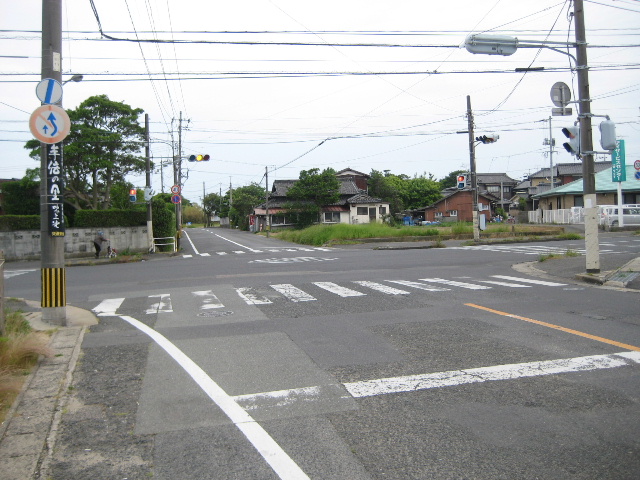 市道は殆ど直線コースから揺らぐことはなく若干下っていく。その先に三叉路があり、押しボタン式信号が付属している。