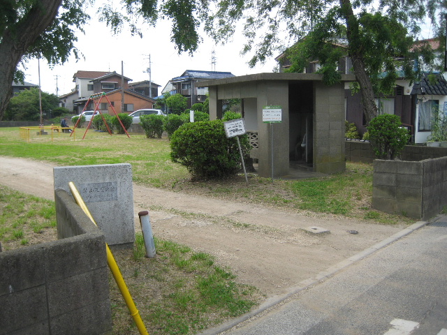 入口より向かって右側に古い公衆トイレがあり、公園の遊具はもう少し先まで歩いたところにある。