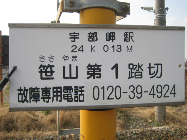 笹山(ささやま)は恩田の南側にある緩やかな丘陵地帯にある地を指す。写真は本路線の笹山第1踏切に設置されている名称板。[2014/1/12]