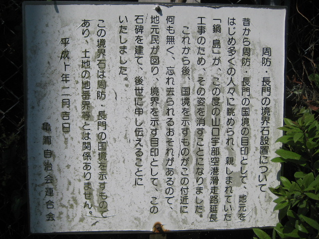説明板にある通りこの国境石は、かつて鍋島が周防と長門の国境だった目印の代償として設置されたのである。