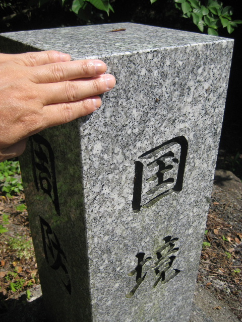 国境と刻まれた新しい石碑。