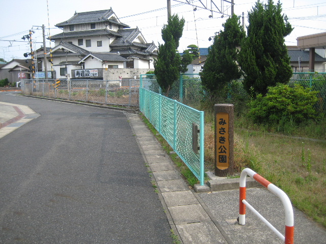 元記事の市道上中堀岬線とは無関係だが、行き止まり付近から岬駅通り線に抜けられる地元管理の道を走っていて奇妙な公園を見つけた。「通り抜けられそうに見えた」最も鉄道側に近い道だ。