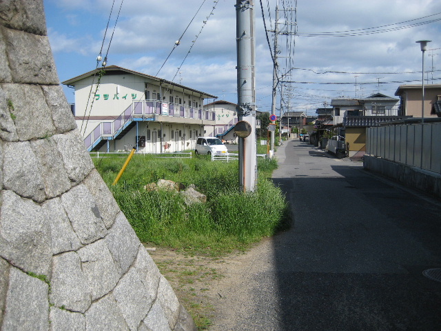2枚前の写真からも推測される通り、市道沿いのこの周辺は現地の開発が著しい。石積みとその横の草地が遺っていたのが奇跡的なくらいだ。集合住宅から個人宅から、すべて平成期に入ってから建ったものと思われる。