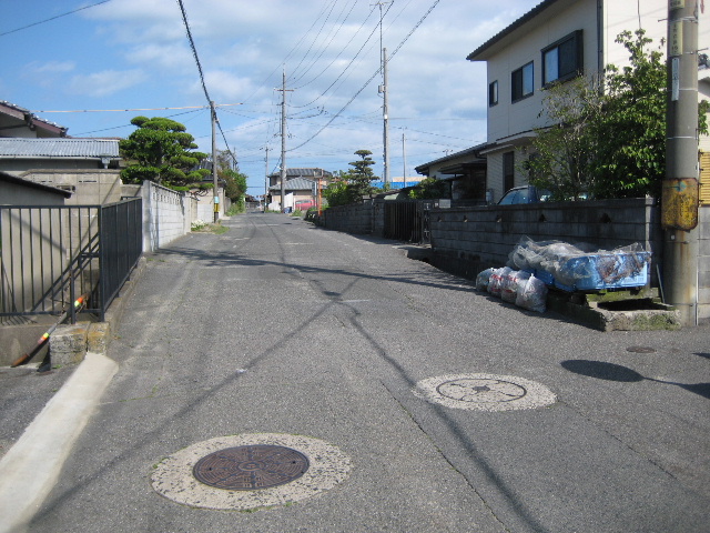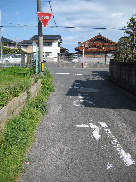 横切る道は市道岬赤岸線で、宇部岬駅を過ぎたところから用水路に沿って国道190号付近まで伸びる狭い道である。