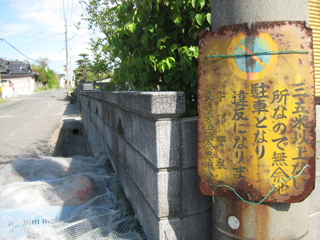 まだ郊外部の市道が地元の生活道同然に扱われ、青空駐車に対して現在より寛容だった頃の看板だ。あまりに路上駐車が多かったり、道幅が狭く通行しづらいという苦情のあった場所に重点的に設置されていた気がする。