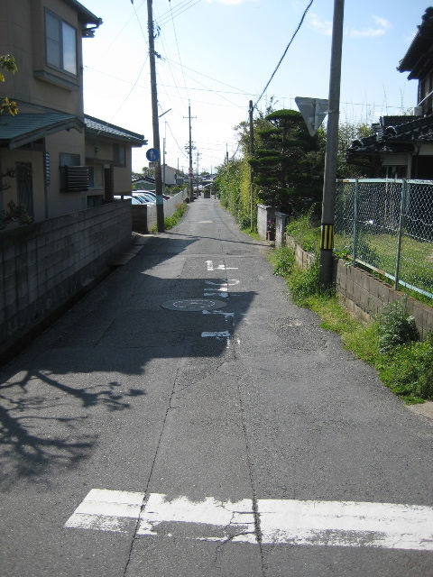 遺憾ながらカメラを向ける気がまったく起きなかったので新興住宅地の区間をサッと通過し、やや細い道との交差点に出会う。
