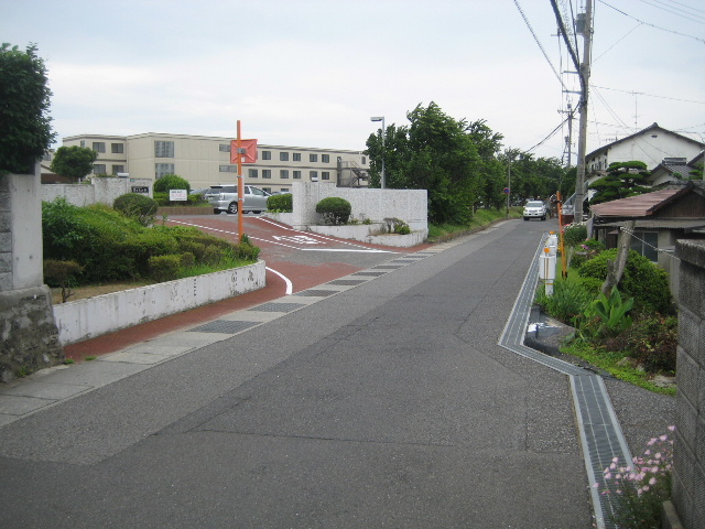 その先右側に分岐する幅広のこの道は地区道で、この先にある住宅地向けに造られた。車では基本的に通り抜け出来ない。この新興住宅地は造られた当初は「グリーンタウン」と呼ばれていた。