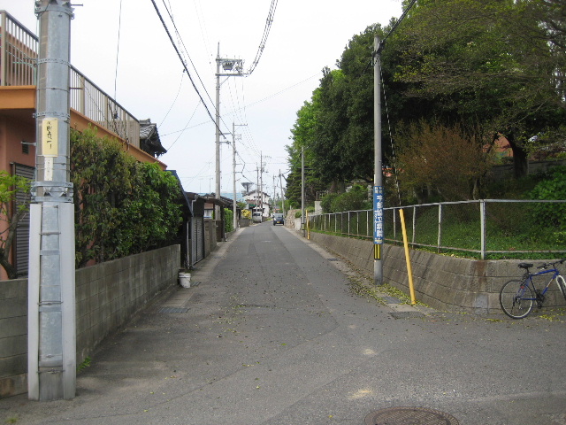 独身寮入口から撮影している。ここより若干先に沢の方へ下っていく地区道がある。