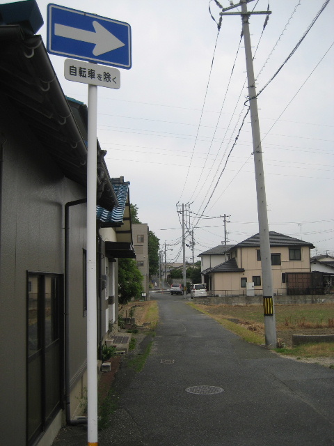 しかしその標識は現在進んでいる市道の方には向いていない。国道側から入ってくる太い道があり、そちらの方に向けて注意喚起している。