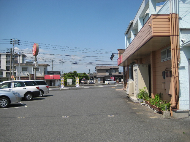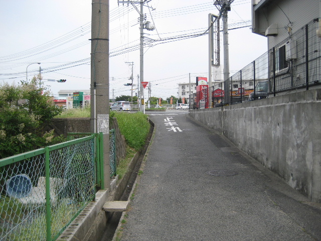 市道と国道に挟まれた三角地帯は店舗となっており、駐車場を介して一応は行き来できる。