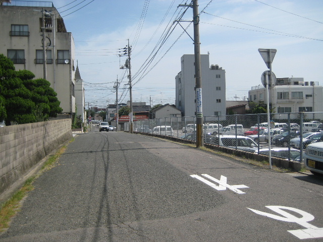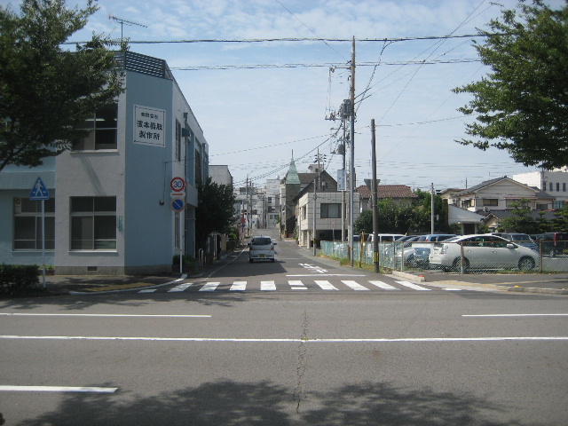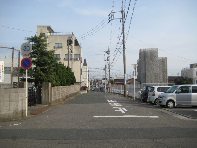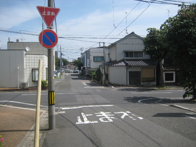 さて、市街部の路地なので展開は急である。駐車場の裏門付近を過ぎると、やや大きめな別の市道に出会う。