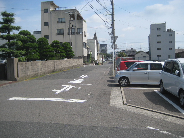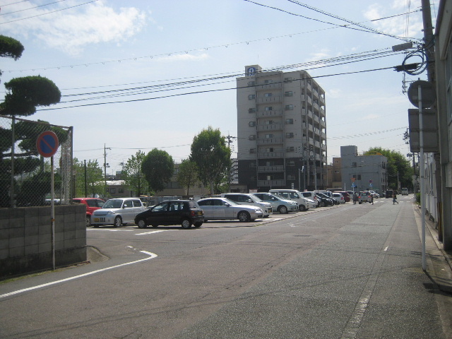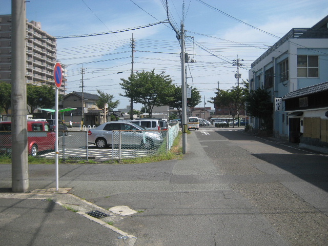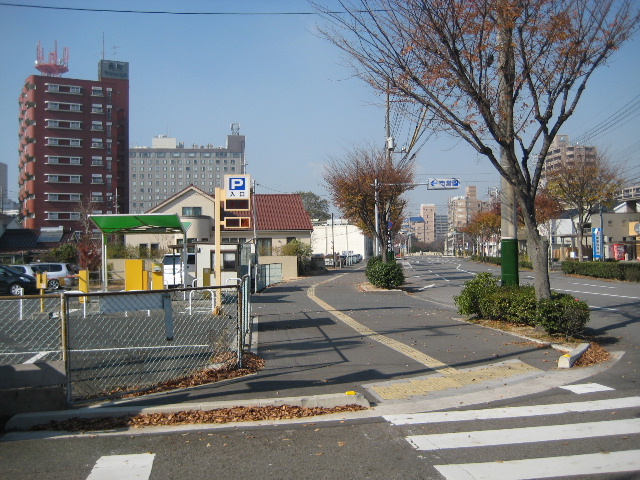 T字路の西側は、市営の有料パーキングである。
