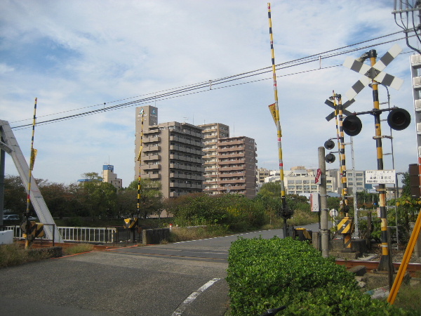 同じ場所から振り返ると、市道真締川東通り線の真締川東踏切がある。