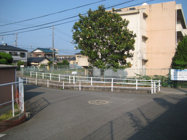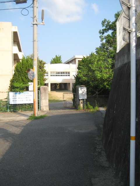 正面に見えるのは琴芝小学校の校舎で、こちら側が裏手になる。この校舎を避けるように市道は2箇所のクランクに差し掛かる。