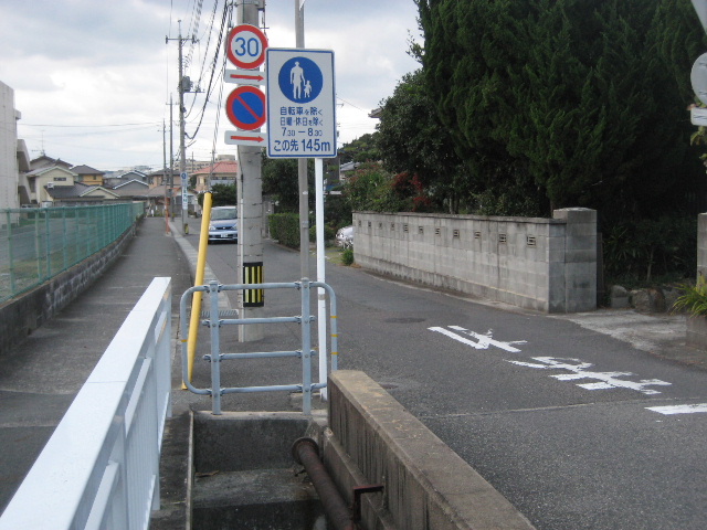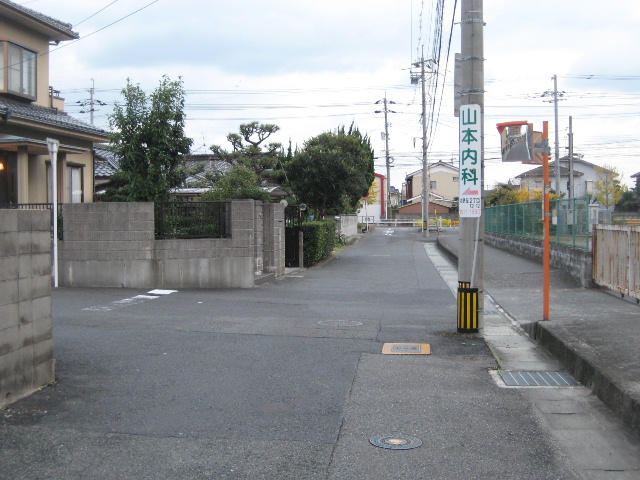本路線の後半部分、琴芝小学校の裏門から参宮通りに出るまでの区間に奇妙なクランクが存在する。写真は裏門手前のクランクが始まる部分。