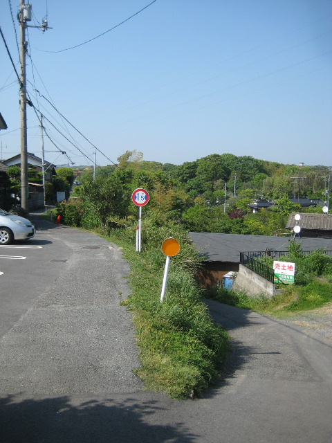 標識の設置や法面の補強から推測されるに、間違って入り込んでしまう車が相当あったのだろう。その場合、最後に掲載した写真でカーブの内側にある敷地で転回せざるを得ず、この過程で往復した車が法肩を崩してしまったのかも知れない。