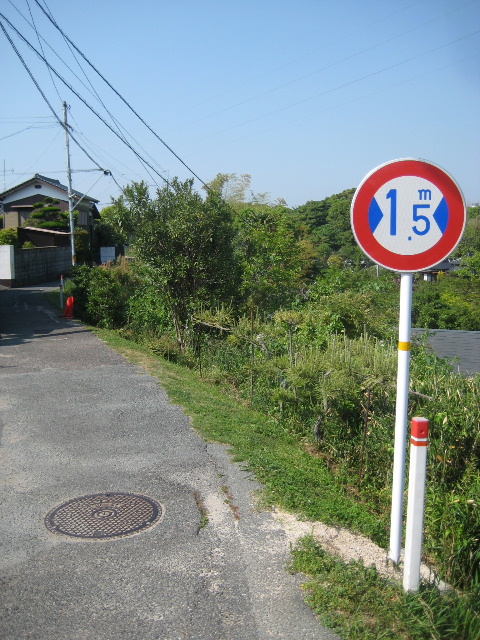 通行可能な車両は幅員1.5mまでを知らせる標識だ。