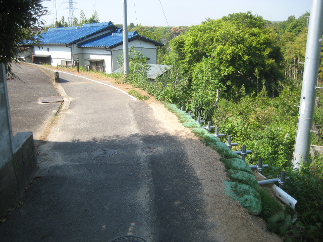 この他に、誤って入り込んだ車がやむなく転回することになるであろう敷地のカーブ法面下が補強されていた。
