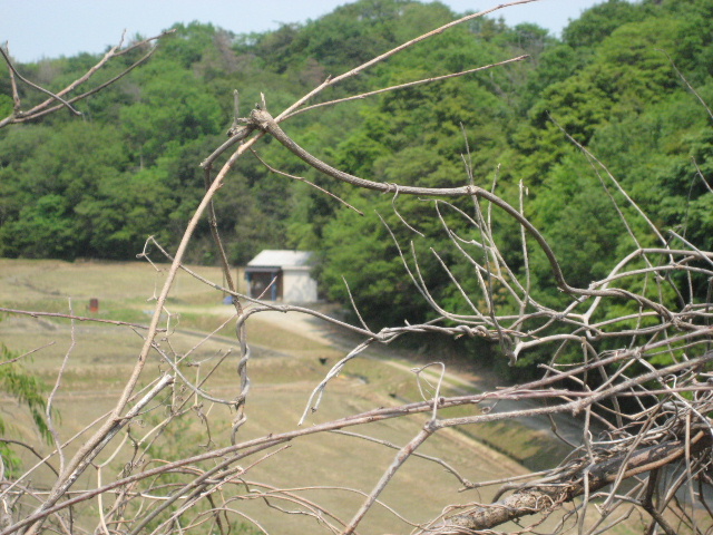 黄色いガードレールなどの存在から県有地を想像するが、実際にはこの先にある沢の田畑は個人所有のものということである。数年前までは柵がなく出入り可能だったのだが、部外者が勝手に立ち入って作物を荒らすなどの行為があったようで自前で設置されたようだ。