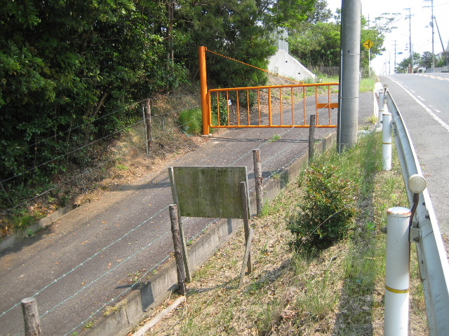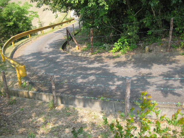 見かけは単に沢へ向かって下る農道だ。しかし進入路の両側に等間隔で杭が打たれ、3条の有刺鉄線が張られている。どう思っても進攻しようがない山側もだ。