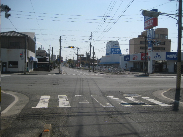 前方を左右に横切るのは市道小松原通り線で、六角堂まで真っ直ぐ進むメインの道の一つである。