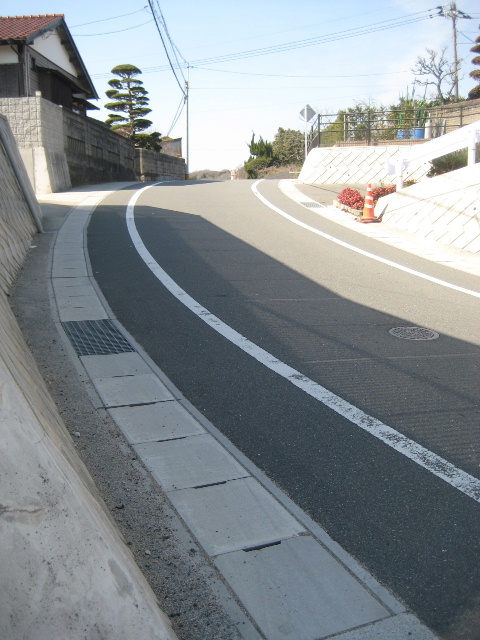 整然と東西に伸びる浜バイパスや周辺の道と異なり、本路線は歩調を合わせず斜めに通っている。恐らく鵜ノ島干拓時代あたりから自然発生した古道がそのまま遺っているのだろう。道路沿いには民家が並び、滑坂付近は一昨年あたりに拡幅整備されたばかりなので、今後も当分その姿を変えることはない。