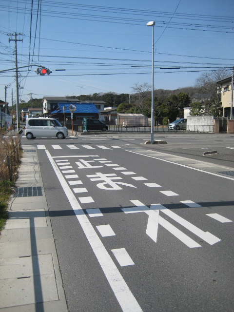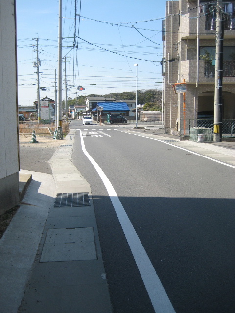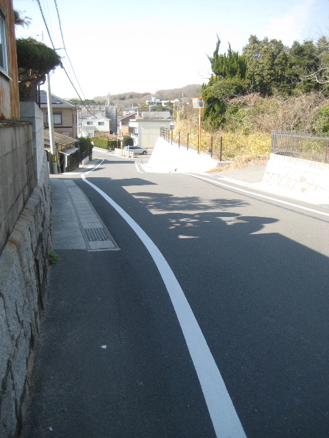 この辺りで幅員は若干狭くなる。今でこそ車が見えないだけで、夕刻時は浜バイパスに出る車が並ぶこともある通行困難な場所だ。