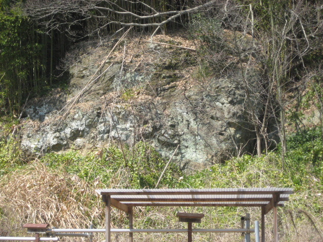 いわゆる蛇紋岩系の岩で、鍋倉や向山など海に面していた岩場に特有のものである。