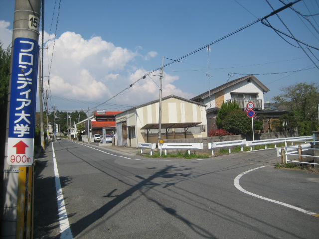 市道は香川学園高校のグラウンドに沿って走り、その端に裏門がある。