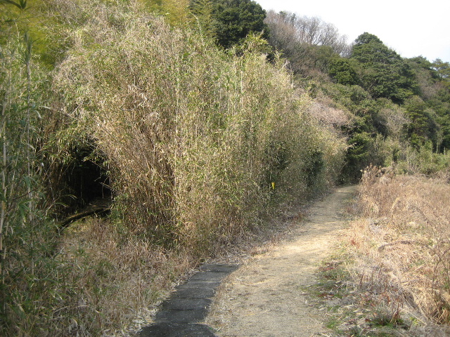 最初の分岐から早足で数分歩くことによって先方にコンクリートの橋のようなものが見えてくる。