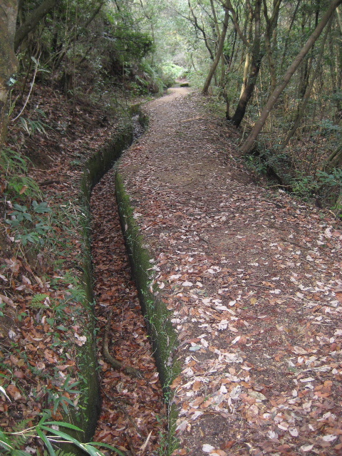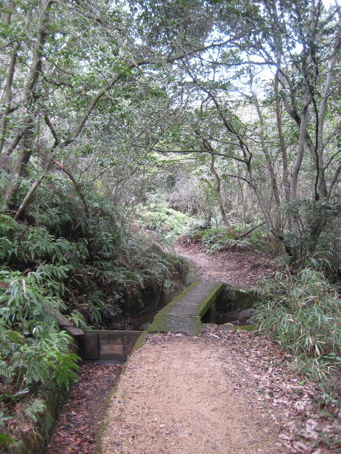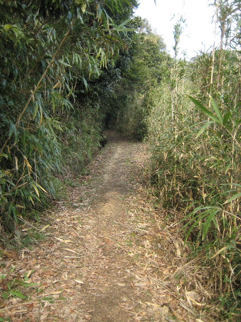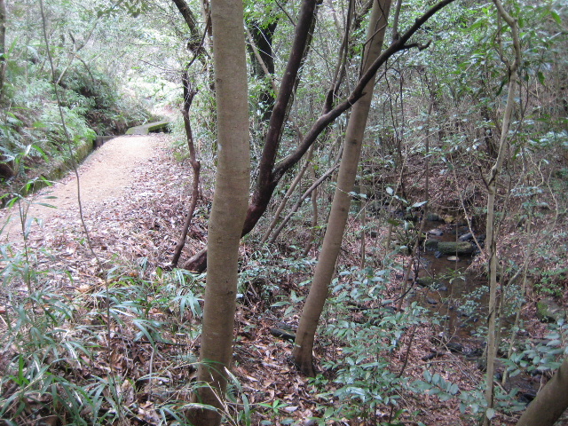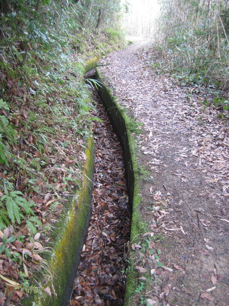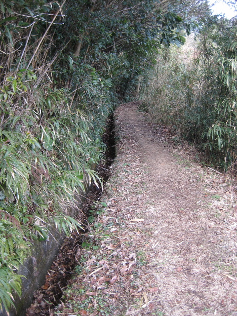 この辺りは笹が異様に多い。適度に日が当たるせいか土手や山際一面に蔓延っている。やがて水路の蓋がなくなり開渠となって山道に寄り添うようになる。