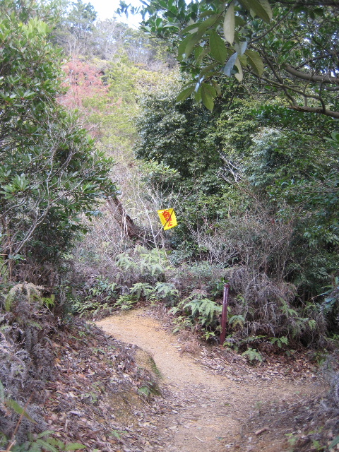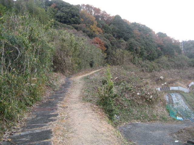 左は霜降山へ向かう登山路のうちの中山観音コースとして知られる道である。数年前に自転車を押し歩きしたときには、あの美しい溜め池を一目見るためにここまで来たのだが、堰堤に向かう道がまったく分からないままどんどん高度を上げ、池を俯瞰する高台まで来てしまっていた。