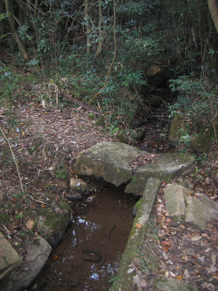 この「割れた石橋」は、十数年前に訪れたときからこのような状態だった。水路を造ってこの石を置いた後に割れたのはかなり確からしい。