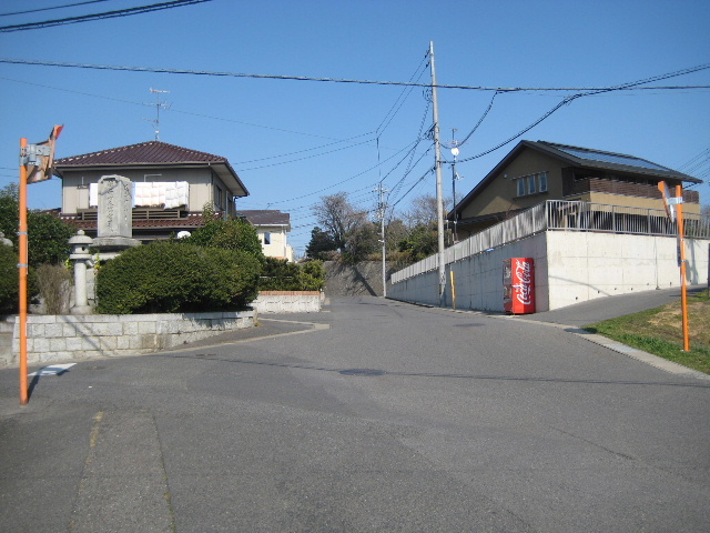 大きな墓石らしきものがある十字路から左へ曲がる道がある。