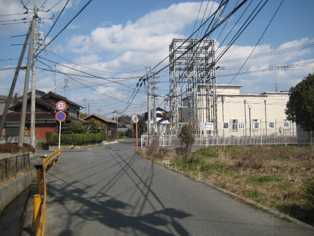 やがて右側にごつい門型鉄塔のようなものが見え始める。藤曲変電所で、宇部変電所から更に降圧して家庭向け電力を供給している。
