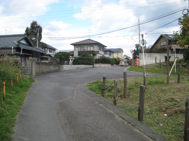 右側に並ぶ住宅群を抜けると、視界が広がり畑が目立つようになる。