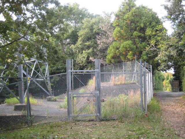 遠くからも見えていたあの奇妙な鉄塔の足元へ来ている。この市道がメンテナンス道を兼ねているようで、市道に面して扉が設置されていた。