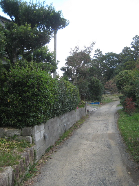 写真では既に未舗装路のように見えるが一応アスファルト舗装路である。通行量が少ないため路上に砂が溜まっているからだ。