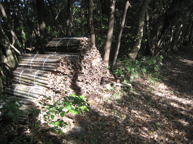 道の近くには割と最近結束されたと思われる竹材が置かれていた。