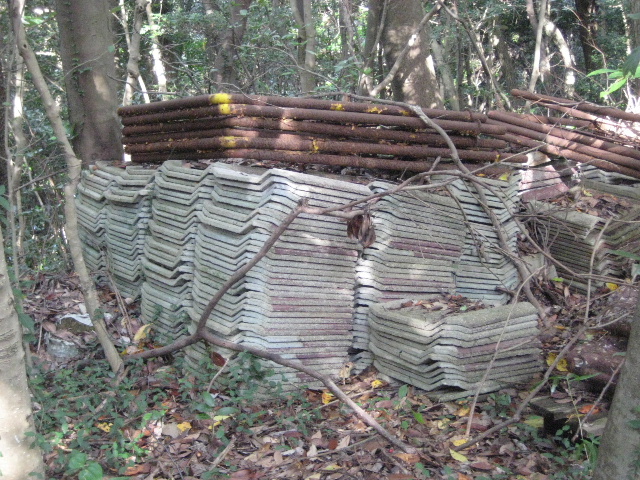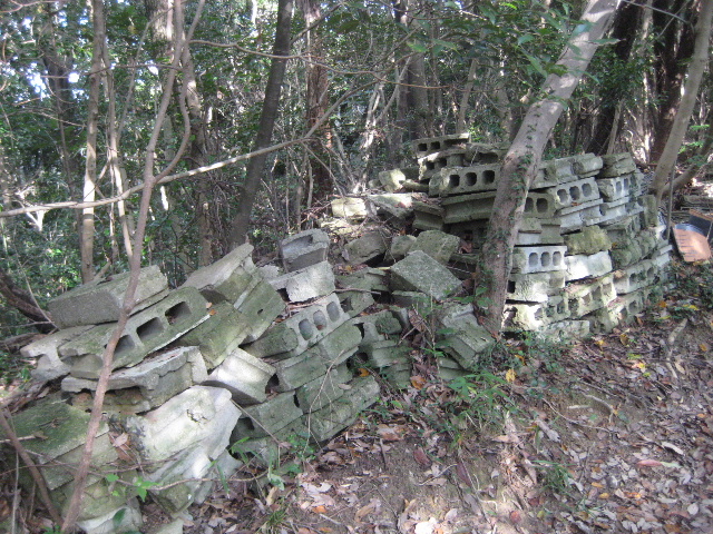 この他にも同じ路端には随分と昔に投棄された建築ブロックや家を解体した後で再利用を目的に積み上げられたコンクリート瓦が見受けられた。