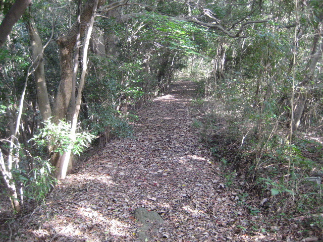 両側はみっしりと雑木林に包まれているため視界は殆ど効かない。しかし本路線が尾根伝いに進んでいることは地形から推測された。木の葉を敷き詰めた道の両側どちらも低くなっていたからだ。
