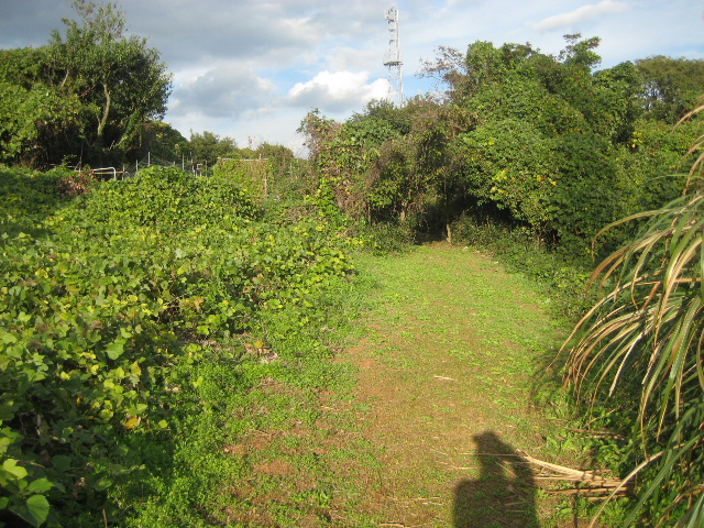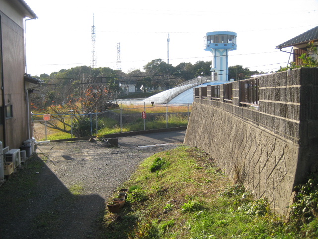 鉄塔がある敷地横の様子。確かにこの部分だけ通路のように残されていると言えなくもない。