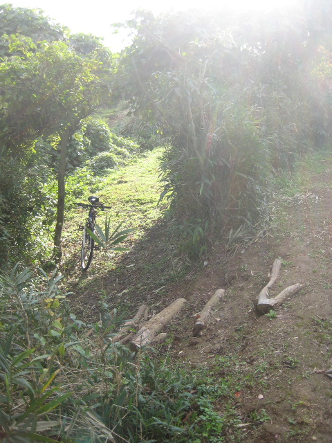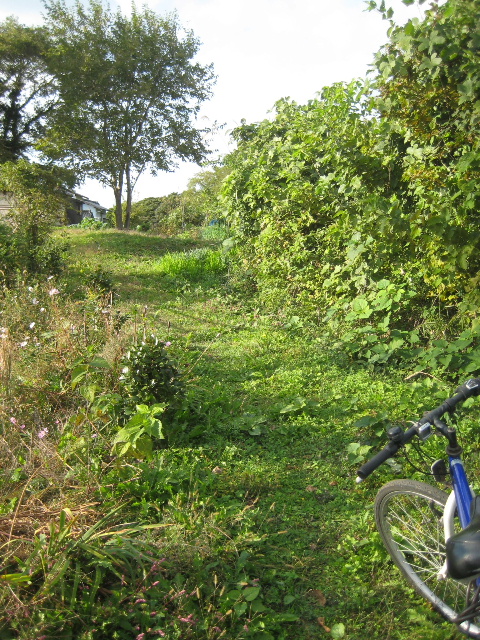 自転車を連れてきてよかった。メモ書きによれば、この調子で真っ直ぐ山沿いにそって横切ればあぜ道のような細い道を脱してある程度広い道へ出るようになっていた。自転車置き去り状態だったらまた取りに戻らなければならなかっただろう…