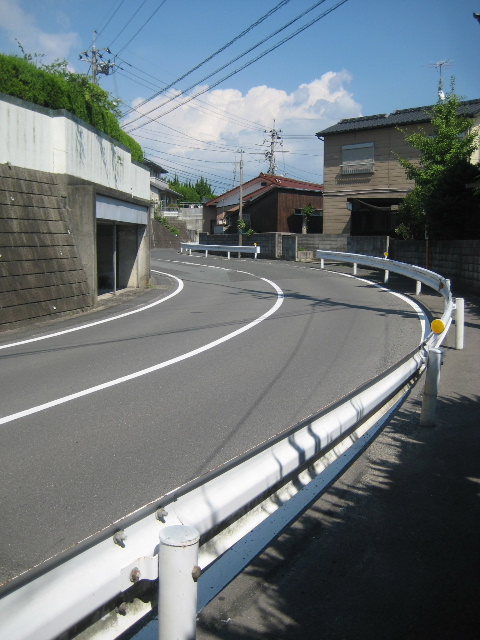 通常、最高地点の峠はあまり民家がなく坂の麓へ下るにつれて家が増えてくるものである。しかしこの道は最高地点まで家並みが途切れないのに、峠を越えて下る側に民家がないのが高校生時代の自分にはとても奇妙な光景に思えた。