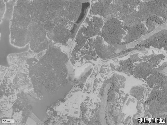 昭和37年に採取されたモノクロ航空映像を眺めると既にこの連続カーブが存在し、道のすぐ南側はカーブを挟む形の谷地になっていて民家は見当たらない。北は現在もそのままある智光院の油利野山となっている。